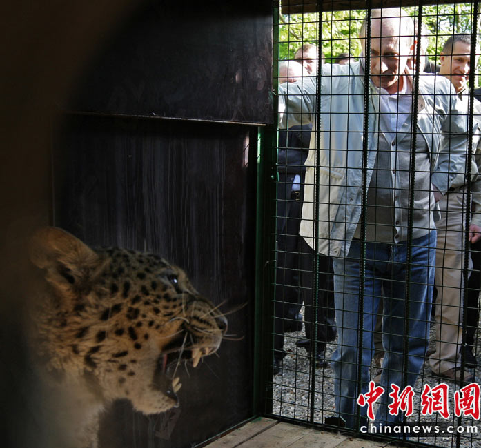 近日,俄羅斯總理普京來到2014年冬奧會舉辦地索契一家動物園,觀看一頭用東北虎換來的波斯豹。普京饒有興致地觀察了一會兒后,對這頭剛剛到來、還有些認生的豹說:“別害怕,跑起來”,還向它做了個飛吻。此次從伊朗引進波斯母豹,是希望與本地的土庫曼尼斯坦公豹交配,以挽救這一瀕臨滅絕的物種。