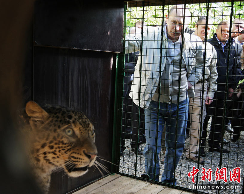 近日,俄羅斯總理普京來到2014年冬奧會(huì)舉辦地索契一家動(dòng)物園,觀看一頭用東北虎換來的波斯豹。普京饒有興致地觀察了一會(huì)兒后,對這頭剛剛到來、還有些認(rèn)生的豹說:“別害怕,跑起來”,還向它做了個(gè)飛吻。此次從伊朗引進(jìn)波斯母豹,是希望與本地的土庫曼尼斯坦公豹交配,以挽救這一瀕臨滅絕的物種。