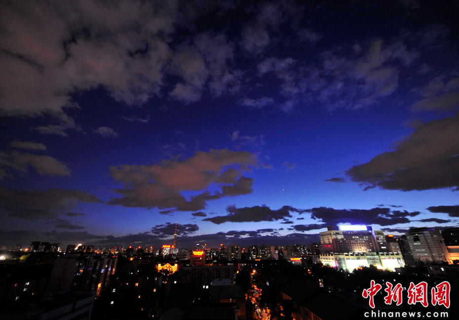 5月5日立夏,京城降雨今晨剛剛結束,霧氣伺機又起。傍晚時分,隨著四級北風的到來,京城天氣逐漸轉晴,霧氣慢慢消散天空彤云密布夜色瑰麗。中新網(wǎng)記者 金碩 攝