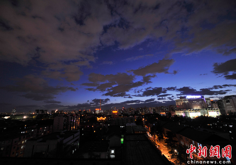 5月5日立夏,京城降雨今晨剛剛結束,霧氣伺機又起。傍晚時分,隨著四級北風的到來,京城天氣逐漸轉晴,霧氣慢慢消散天空彤云密布夜色瑰麗。中新網記者 金碩 攝
