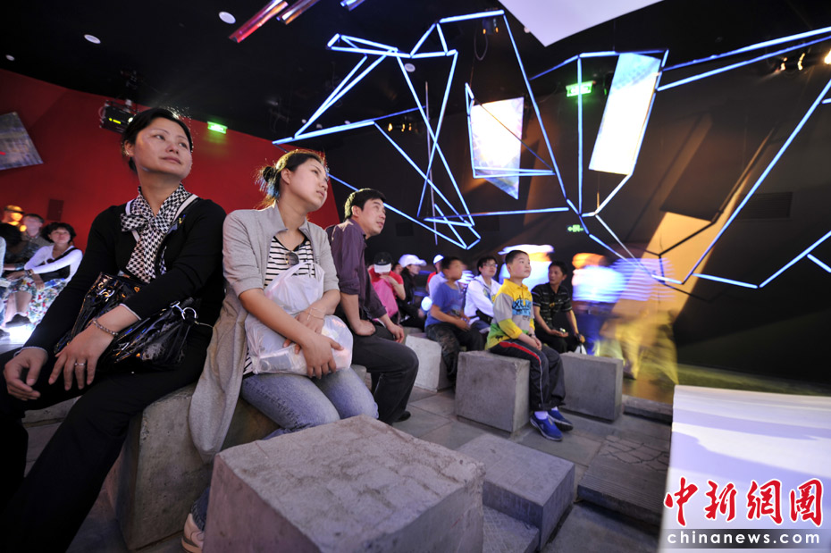 觀眾在觀看模擬演出,做的不是椅子,是一個(gè)個(gè)“石凳”,感覺(jué)就像是在廣場(chǎng)上。中新網(wǎng)記者 王紅綱 攝