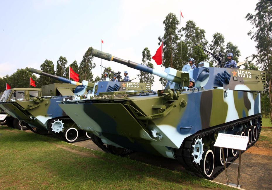 海軍陸戰(zhàn)隊兩棲突擊車在慶典儀式上進行展示。圖片來源:新華網 查春明攝