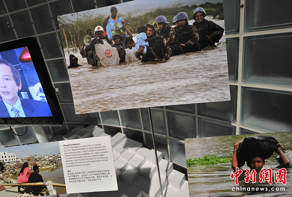 一所藍(lán)色的簡(jiǎn)樸平房,在5月開園的上海世博會(huì)大道邊上,極不顯眼。但是,聯(lián)合國(guó)聯(lián)合館的鮮明會(huì)標(biāo),特別吸引人。這個(gè)展館集中了世界衛(wèi)生組織、世界銀行和聯(lián)合國(guó)的兒童基金會(huì)、糧農(nóng)組織、教科文組織等22個(gè)機(jī)構(gòu)。圖片來(lái)源:中國(guó)新聞網(wǎng) 賈國(guó)榮 攝