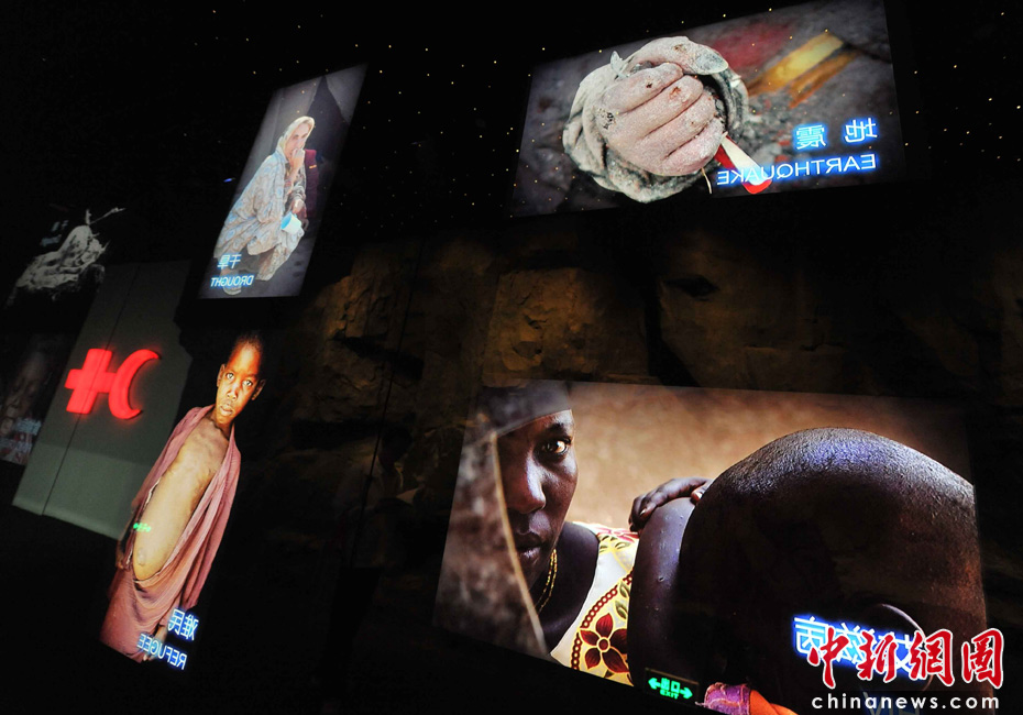 5月8日是上海世博會的紅十字會和紅新月會館榮譽(yù)日,兩會在簡樸如醫(yī)療帳篷的館里,運(yùn)用聲光電展示大量紀(jì)實(shí)圖片,于大災(zāi)大難中顯示救死扶傷的大愛,可歌可泣。這兩個(gè)鮮紅標(biāo)志的人道救援組織,一百多年來遵循著堅(jiān)定不移的宗旨——“經(jīng)歷戰(zhàn)爭與災(zāi)難的黑暗,我們更需要人道的光芒”。世界的未來,還將依靠它紅色的光明,去驅(qū)散天災(zāi)人禍的陰影。中新社發(fā) 賈國榮 攝