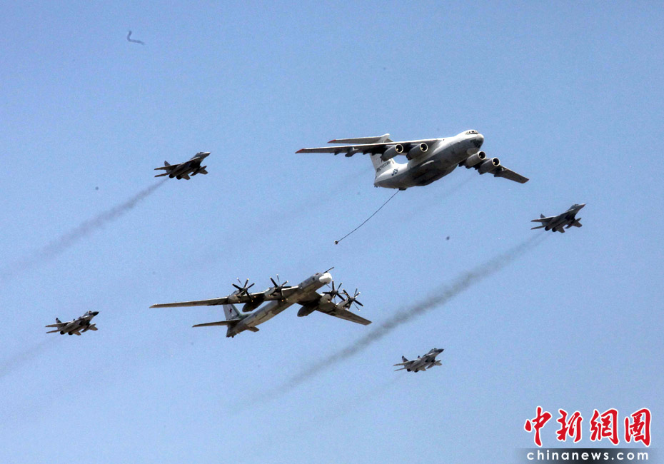 5月9日,俄羅斯在莫斯科紅場舉行盛大的閱兵式,慶祝衛國戰爭勝利65周年。莫斯科時間5月9日上午10點(北京時間9日下午2點)許,閱兵式正式開始。圖為空中梯隊飛越紅場上空。中新網記者 張朔 攝