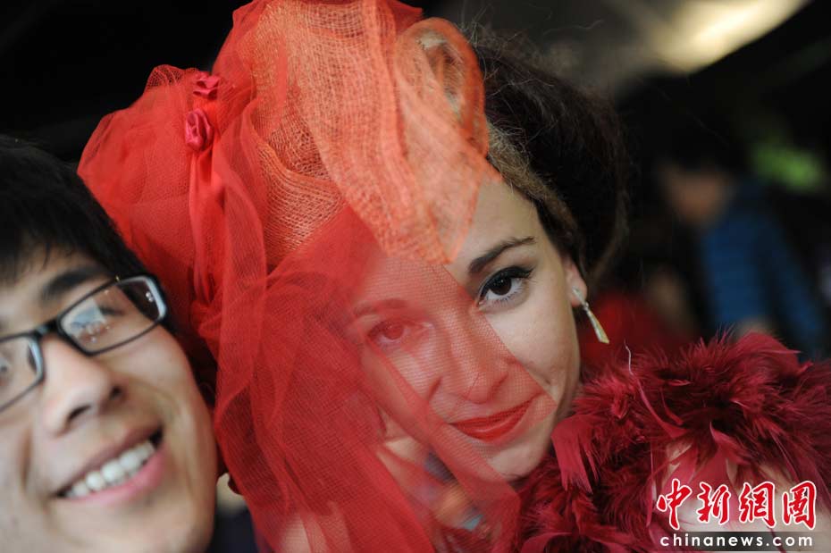 圖為法國風情的禮儀小姐。 中新社記者 廖攀 攝