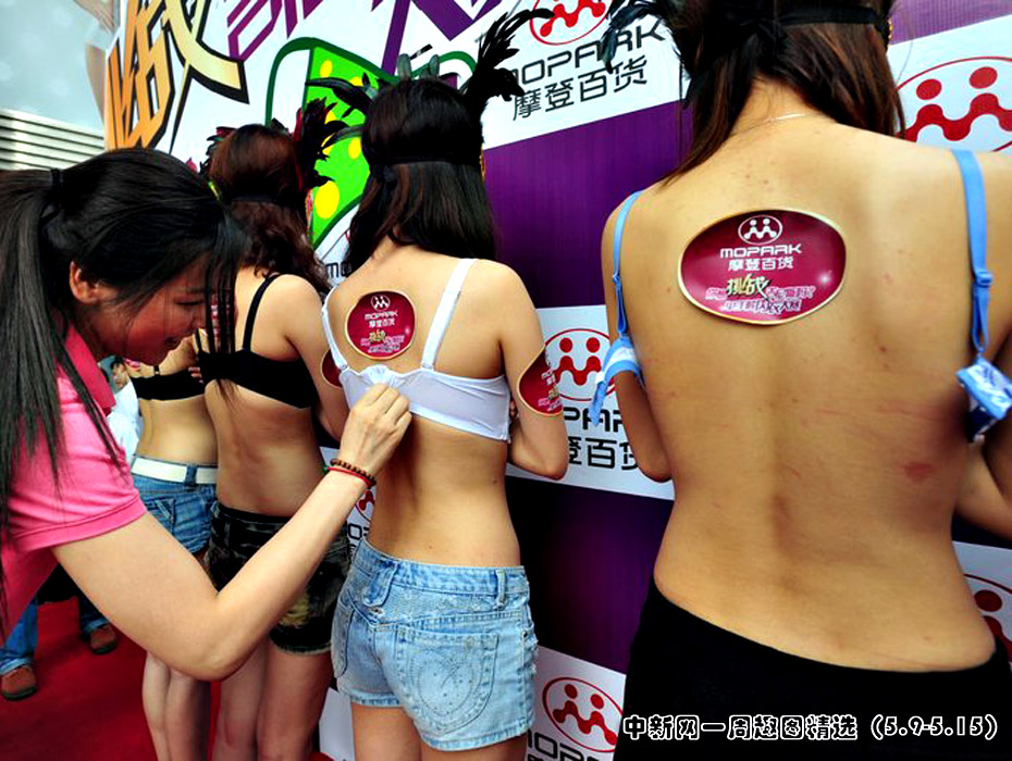 5月8日,在廣州天河某個(gè)百貨商場(chǎng)門(mén)口上演了一場(chǎng)另類的“解內(nèi)衣”比賽。圖片來(lái)源:中國(guó)新聞網(wǎng)>>點(diǎn)擊觀看詳細(xì)內(nèi)容