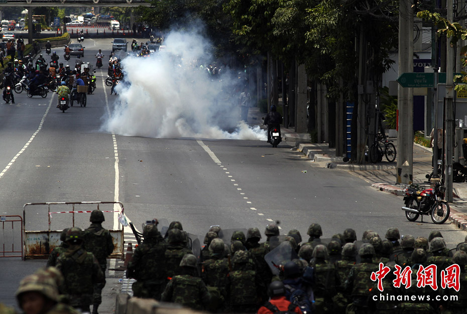 泰國政府軍和反政府示威者5月14日深夜在曼谷爆發嚴重暴力沖突。曼谷緊急醫療機構15日稱,截止當地時間早晨6時,沖突已導致16人死亡,至少141受傷,傷者中包括3名外國人。圖片來源:中國新聞網
