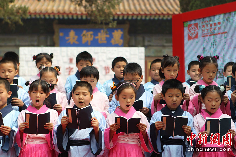 5月15日,首屆“兩岸漢字藝術(shù)節(jié)”新聞發(fā)布會(huì)在北京孔廟舉行。原文化部長(zhǎng)、著名作家王蒙與臺(tái)灣文化總會(huì)會(huì)長(zhǎng)劉兆玄等共同書(shū)寫(xiě)漢字——“漢字藝術(shù)源遠(yuǎn)流長(zhǎng)”。 中新社發(fā) 蘇丹 攝