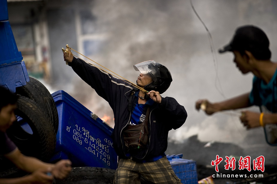 泰國軍隊和反政府的“紅衫軍”16日繼續在曼谷的多處地點對峙,槍聲和爆炸聲不時響起,曼谷的部分街道已成為“戰區”。泰國急救醫療部門17日表示,泰國軍警與反政府“紅衫軍”示威民眾3天來在曼谷街頭爆發的沖突,死亡人數已經上升到35人。圖片來源:中國新聞網