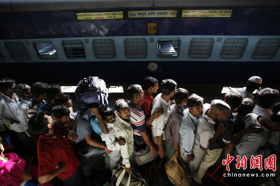 16日,印度新德里的一個火車站發生踩踏事故,造成2死9傷。一班列車提早進站且?吭诹硪坏貐^,擴音器一宣布消息,立刻有數百人蜂涌至列車?康脑屡_,一名婦人與一名小孩因此被踩死。 圖片來源:中國新聞網