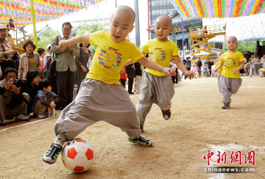 2010年5月15日,韓國首爾曹溪寺院舉行了兒童足球賽,一群四五歲的孩子和小和尚參加了這場足球友誼賽。這場比賽是佛誕節活動的一部分,也是為了迎接2010世界杯足球賽的到來。Chung Sung-Jun