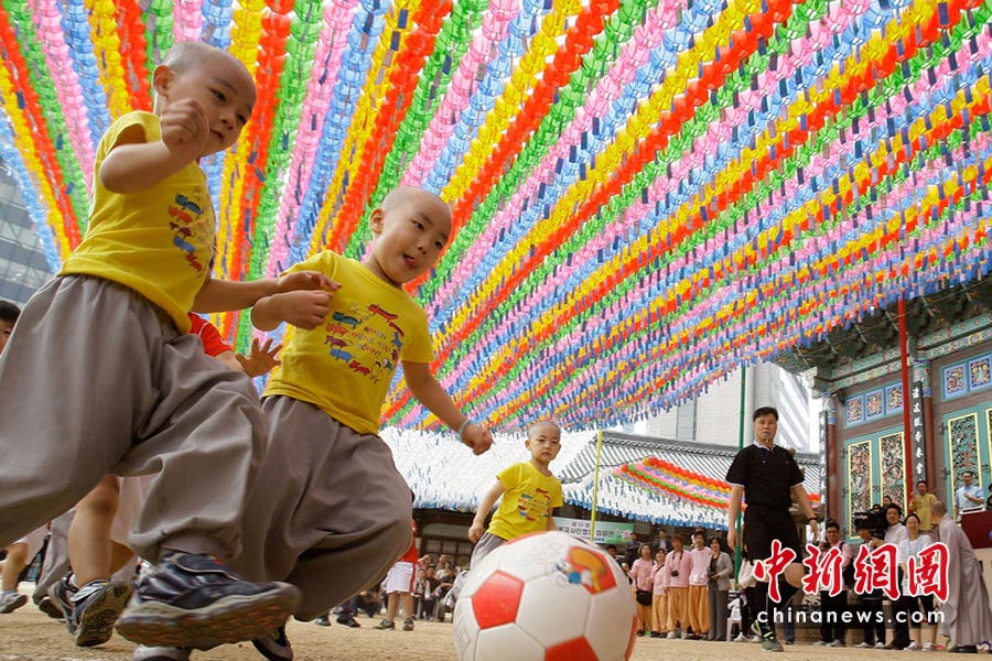2010年5月15日,韓國首爾曹溪寺院舉行了兒童足球賽,一群四五歲的孩子和小和尚參加了這場足球友誼賽。這場比賽是佛誕節活動的一部分,也是為了迎接2010世界杯足球賽的到來。Chung Sung-Jun