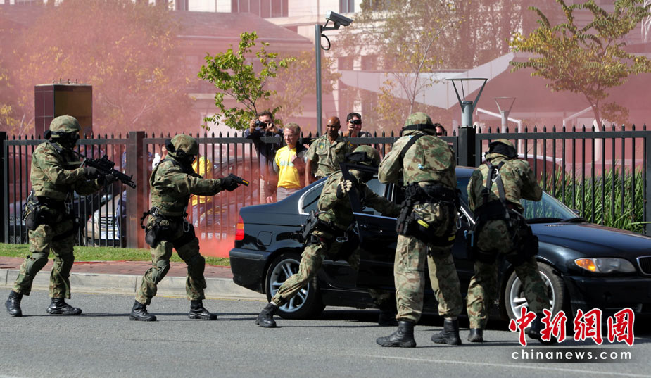 5月17日,南非約翰內(nèi)斯堡,警察舉行防暴演習(xí),為下個(gè)月舉行的世界杯做準(zhǔn)備。 圖片來(lái)源:中國(guó)新聞網(wǎng)