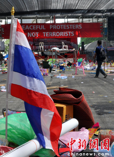 泰國紅衫軍領(lǐng)導(dǎo)人乍都蓬19日下午1時決定,向曼谷警方投降。同時向警方投降的還包括納塔兀、素蓬、翁醫(yī)師等紅衫軍核心領(lǐng)導(dǎo)人。紅衫軍領(lǐng)導(dǎo)人納塔兀責(zé)其支持者宣布,結(jié)束紅衫軍已持續(xù)了兩個多月的集會示威行動。圖片來源:中國新聞網(wǎng)