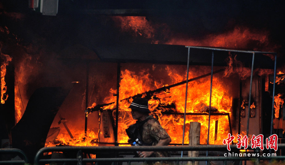 泰國軍方19日清場,希望將陷入內戰邊緣的曼谷拯救出來,雖然紅衫軍節節敗退,但有激進分子未肯罷休,四處放火,電視臺、股票交易所、電力公司、幾間銀行、商場戲院都遭殃,商場和便利店亦成為搶掠目標。據報曼谷有27處地方起火,泰國最大的商場Central World、Siam Square和Siam Paragon三大購物中心被縱火,其中Central World燒通頂,據報快將倒塌。
