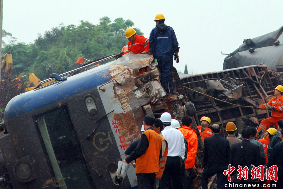 5月23日凌晨2時10分,滬昆鐵路江西東鄉段發生一起客運列車脫線事故,截至上午9時,已有10人遇難,車內乘客全部被轉移,現場救援工作正在緊張進行。事故發生后,南京軍區武警,江西省消防、交警,中鐵電氣化局、醫療等部門立即組織近萬名人員參與搶險救災,目前現場已有10余臺挖土機和吊車參與救援。中新社發 劉占昆 攝
