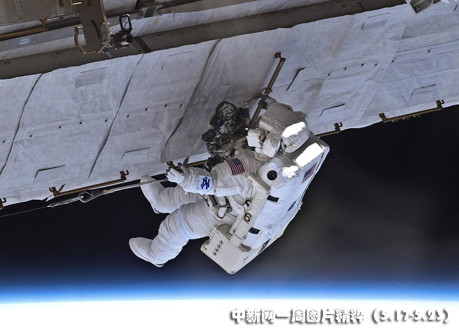 5月17日,“亞特蘭蒂斯”號航天飛機宇航員加雷特·賴斯曼和史蒂夫·鮑恩進行了與國際空間站對接后的首次太空行走。