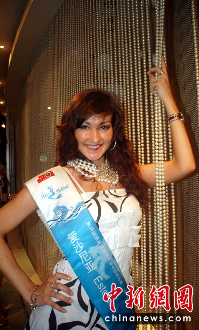 5月24日,海南三亞,正在此間參加第35屆國際比基尼小姐全球總決賽的64位佳麗,參觀了三亞一家珍珠博物館。佳麗們對(duì)漂亮的珍珠十分鐘愛,在攝影師前擺出各種“POSE”,留下美麗身影。 中新社記者 尹海明攝