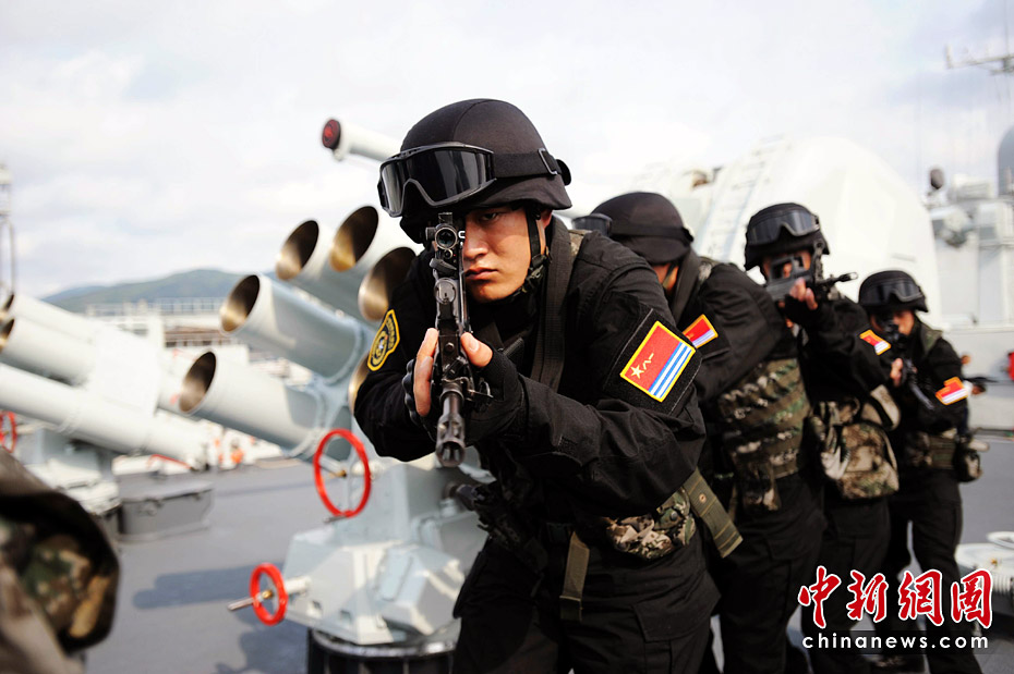 3月2日,特戰隊員在168艦上一絲不茍地對各種方案預案進行演練。他們說,不給海盜有任何機會。江山 攝