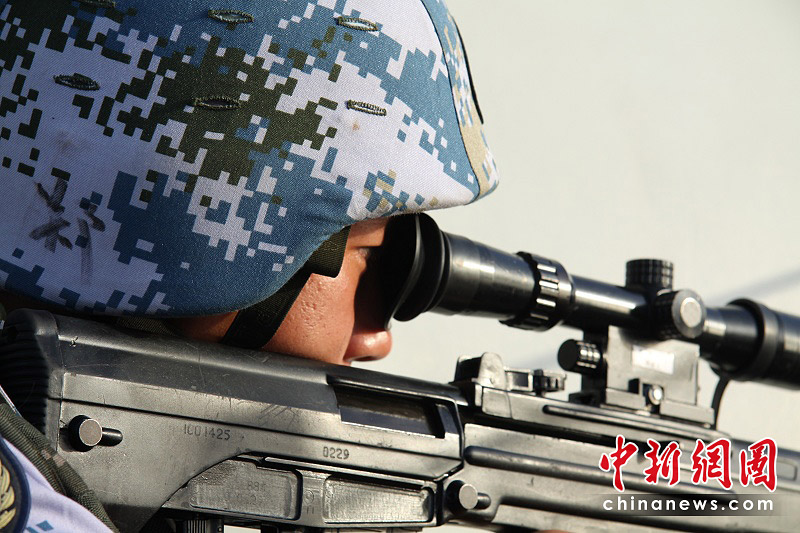 5月5日,特戰(zhàn)隊員在進(jìn)行瞄準(zhǔn)。胡軍 攝