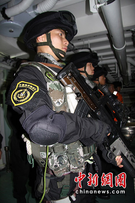 3月7日,新加坡海峽特戰隊員在船艙中集合。胡軍 攝