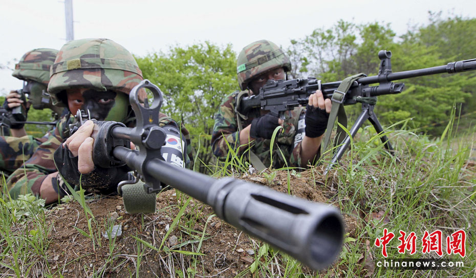 5月24日,韓國軍隊在靠近韓朝非軍事區的揚口舉行軍事演習。圖片來源:中國新聞網
