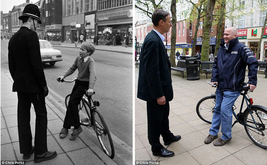 照片上的兩位主人公都無法記起當時究竟在聊些什么,大概是調皮又愛炫耀的小男孩把車騎上了機動車道被警察叔叔批評吧。現在小男孩長大了,當年的警界新人也成了退休的老警官。