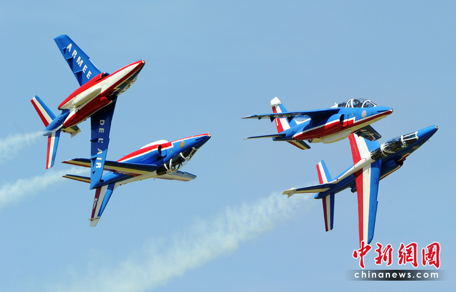 5月25日,法國巡邏兵特技飛行表演隊在普羅旺斯地區(qū)進行驚險的飛行表演。