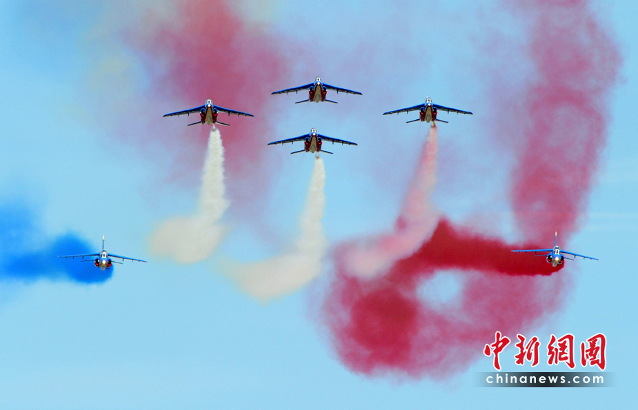 5月25日,法國(guó)巡邏兵特技飛行表演隊(duì)在普羅旺斯地區(qū)進(jìn)行驚險(xiǎn)的飛行表演。