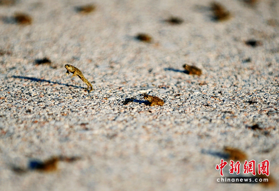 26日,希臘東北部地區的一條高速公路遭數百萬只青蛙“占據”而被迫關閉了兩個小時。希臘環保部門表示,這些青蛙可能只是在前往附近小湖找食物過程中“碰巧路過”高速公路。