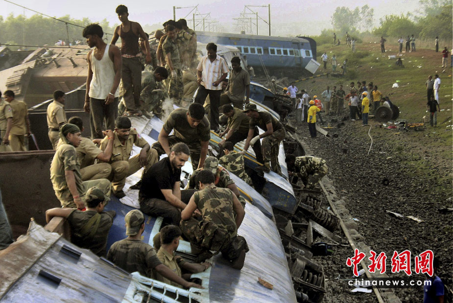 印度東部西孟加拉邦火車遇襲脫軌事故已經發生30多個小時,29日救援人員繼續在現場進行搜救工作。西孟加拉邦警察局長表示,截至目前已經發現110具尸體。同時仍有多達50人下落不明。圖為救援現場。