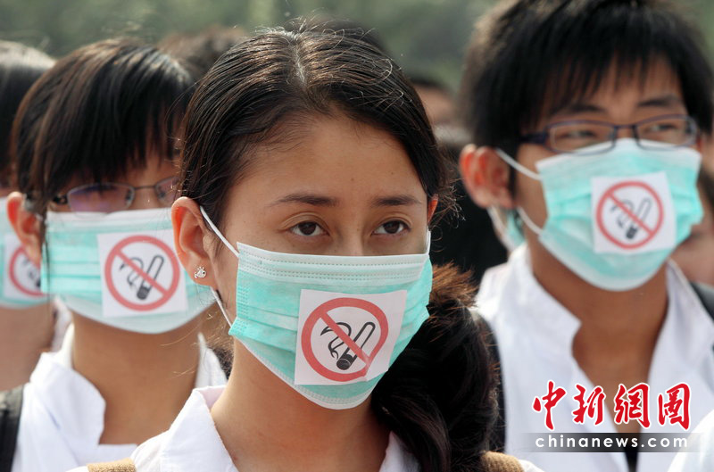 5月31日是第23個“世界無煙日”,今年的主題是:性別與煙草——抵制針對女性的市場營銷。吸煙有害健康早已成為不爭的事實。有關醫學研究表明,吸煙可導致心腦血管疾病、癌癥、慢性阻塞性肺病等多種疾病,已成為繼高血壓之后的全球第二號殺手。為了您的健康,請熄滅您手中的香煙。圖為5月29日西安大學生戴著無煙口罩開展控煙行動。袁景智 攝