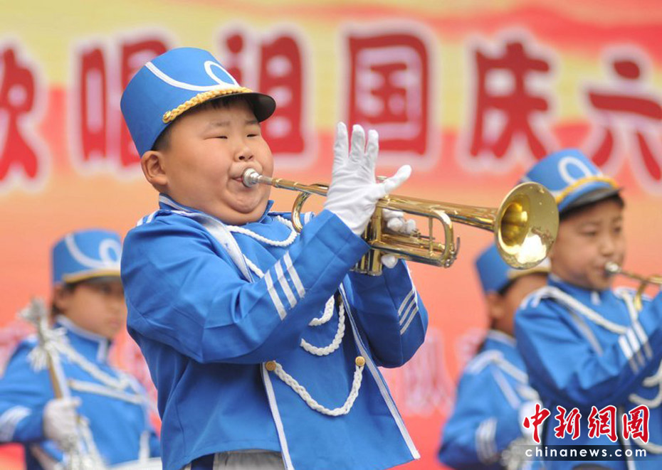 5月29日,“紅領巾太陽花,歌唱祖國慶六一”黑龍江省少先隊統一主題隊會哈爾濱現場暨少先隊鼓樂隊展演在哈爾濱花園小學舉行。圖為少先隊鼓樂隊隊員等候上場。荊天旭/CFP