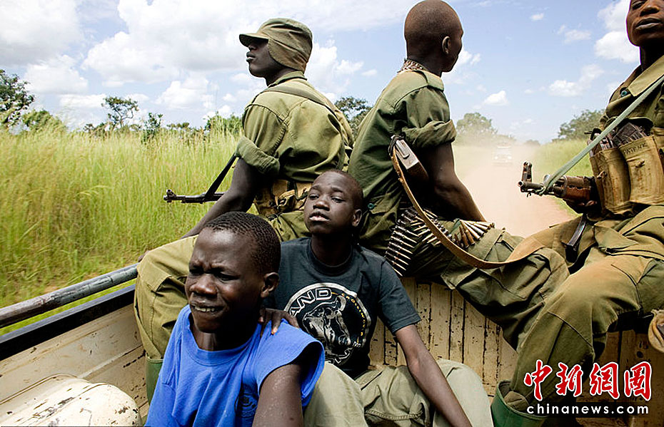 學校放假了,Ronald(左)和Ongom(右)乘卡車回到烏干達帕德爾境內(nèi)流民營。Ronald(左)和Ongom(右)以前都是兒童軍。在穿越叛軍活動頻繁的地區(qū)時,有士兵保護他們的安全。圖片來源:CFP