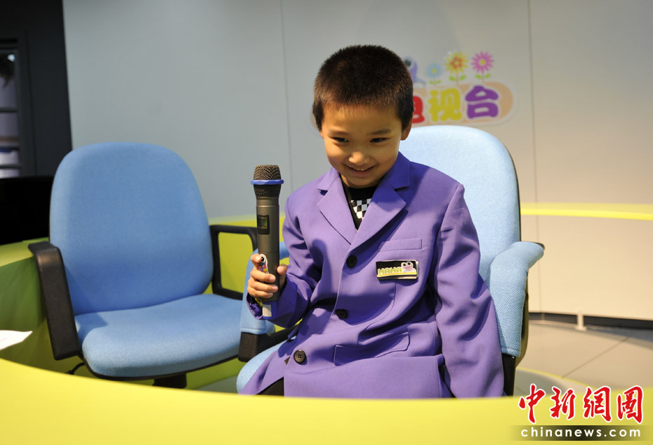 圖為孩子在體驗做電視臺主持人。 中新網記者 王紅綱 攝