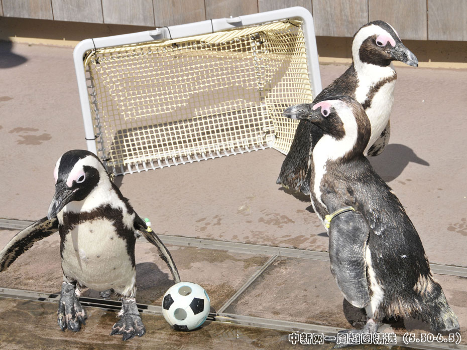 6月1日,在日本東京一家海洋館里,幾只企鵝“披掛上陣”,進行了一場別開生面的足球賽,迎接世界杯。圖片來源:中國新聞網>>點擊觀看詳細內容