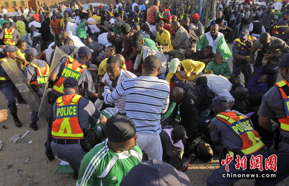 6月6日,在南非約翰內(nèi)斯堡市郊的馬庫隆球場進(jìn)行的尼日利亞隊(duì)和朝鮮隊(duì)的世界杯熱身賽前發(fā)生了球迷踩踏事件。這起惡性踩踏事件共造成9人受傷,其中包括1名安保人員。據(jù)悉,在惡性踩踏事件發(fā)生前后,當(dāng)?shù)匕踩藛T對球迷們進(jìn)行了鎮(zhèn)壓,惡性踩踏事件很可能與此次鎮(zhèn)壓有關(guān)。