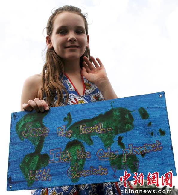 當(dāng)?shù)貢r(shí)間2010年6月6日,英國倫敦舉行卡姆登綠色市集(Camden Green Fair),這是英國倫敦每年環(huán)保領(lǐng)域的“重頭戲”。本屆市集的主旨是要喚起大眾對環(huán)境問題的關(guān)注,選擇更加可持續(xù)發(fā)展的生活方式。據(jù)活動(dòng)主辦方預(yù)計(jì),本屆市集將吸引來自英國各地和世界各國的2萬多人參加。圖為一位英國小姑娘展示她創(chuàng)作的環(huán)保主題繪畫“save the earth”。Fiona/攝 Fiona 馬小剛/文
