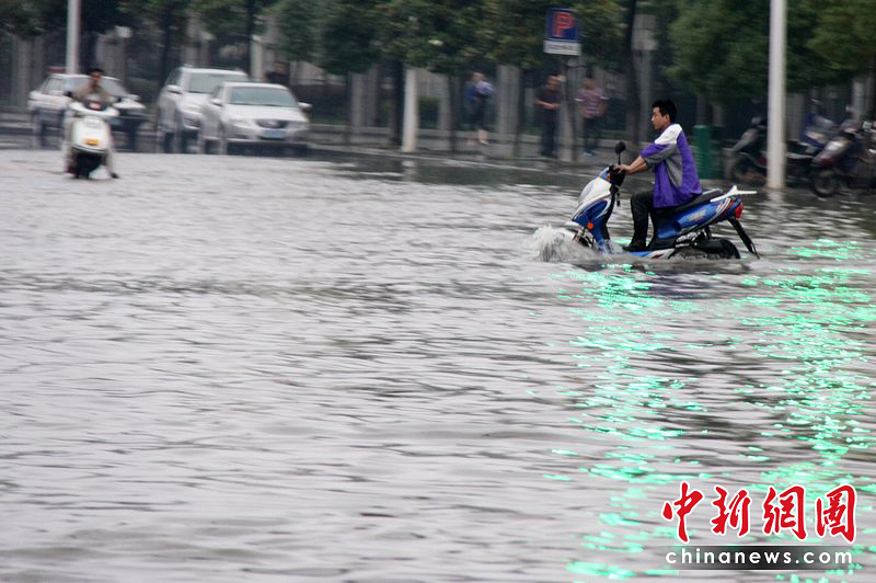 6月8日,在江西瑞昌市街頭,行人在積水中艱難前行。自6月7日夜間開始,江西九江市持續(xù)遭受暴雨襲擊,各縣、區(qū)24小時(shí)的平均降雨量在80毫米左右,最大降雨量在廬山區(qū)達(dá)到134毫米。魏東升 胡國(guó)林/CFP