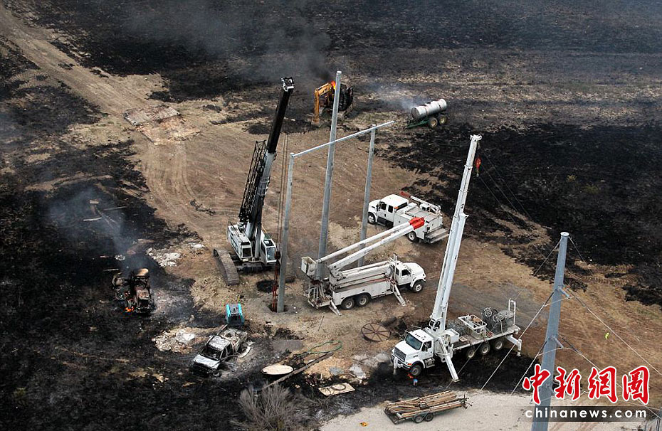 當地時間6月7日,美國得克薩斯州北部發生一起天然氣管道爆炸事件。幾名工人在進行挖掘作業時觸及鋪設在地下的天然氣管道,引發爆炸及大火,造成至少一名工人死亡,7人受傷。圖片來源:中國新聞網