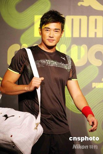 七月三十日,為迎接即將開(kāi)幕的奧運(yùn)盛事,一家國(guó)際知名運(yùn)動(dòng)品牌在海港城舉行展覽。圖為香港先生黃長(zhǎng)興客串模特登臺(tái)演繹最新服飾系列。 中新社發(fā) 洪少葵 攝