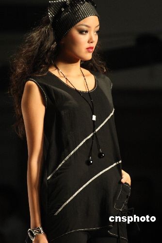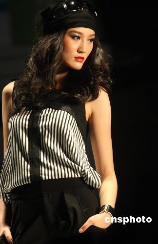11月23日,正在廣東虎門舉行的第13屆中國(虎門)國際服裝交易會,某香港品牌推出“水墨櫻花 黑白天下”時裝發布會。結合國際流行元素,加之一貫的優雅風格,作品運用黑白的時尚,演繹女性的性感和優雅。中新社發 錢興強 攝