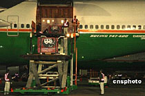 贈(zèng)臺(tái)大熊貓抵達(dá)臺(tái)北桃園機(jī)場(chǎng)