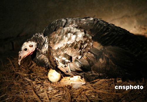 近日,在武漢東湖鳥語林,一支成年雌性火雞正在孵一枚企鵝蛋,據了解,這枚企鵝蛋是武漢東湖海洋世界的企鵝“小美人”11月13日產下的,由于“小美人”近日還要產蛋,鳥語林的鳥類專家決定用與企鵝孵化溫度最接近的火雞來代替企鵝“媽媽”孵蛋。中新社發 王振武 攝