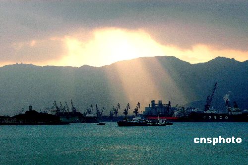 1月9日早晨,江蘇連云港云臺山上空出現(xiàn)了美麗壯觀的太陽光柱現(xiàn)象。初升的太陽透過厚厚的云層,打開一道“天窗”,周圍產(chǎn)生了強烈的七彩光暈,照射著東方大港港口,呈現(xiàn)出酷似舞臺聚光燈的光束效果,與碧綠的海水相映,形成了奇幻的海天意境和瑰麗色彩。中新社發(fā) 王春 攝