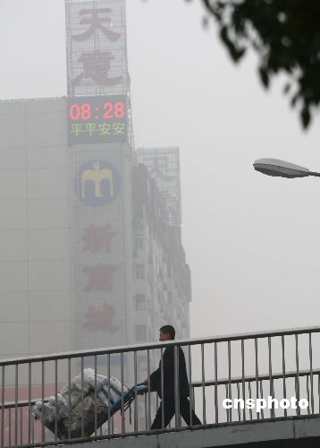 10月26日,北京阜外大街濃霧。當天清晨,北京市氣象局發布大霧橙色預警信號,部分地區出現能見度小于200米的濃霧。中新社發 趙振清 攝