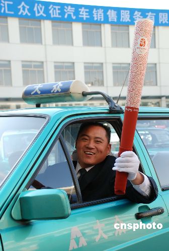 11月1日,中國(guó)大陸第一位出租車司機(jī)“奧運(yùn)火炬手”在山東淄博產(chǎn)生。他是山東淄博大眾交運(yùn)公司雷鋒出租車司機(jī)于國(guó)平。2008年于國(guó)平將參加2008北京奧運(yùn)火炬山東段的傳遞活動(dòng)。中新社發(fā) 梁寶海 攝