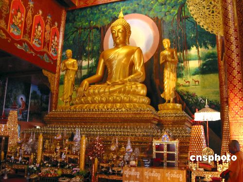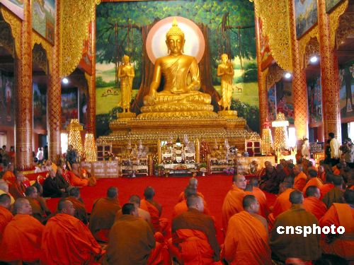 十一月三日上午,來(lái)自中國(guó)以及東南亞各國(guó)的一百零八位佛教界高僧大德,在位于西雙版納州景洪市,共同為新近落成的中國(guó)最大的南傳佛教寺院勐泐大佛寺開光,近萬(wàn)名中外賓客和信眾前往觀禮。中新社發(fā) 甘娜 攝