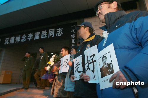 12月9日,八一體工大隊(duì)隊(duì)長李富勝的追悼會(huì)在八寶山舉行,中國足壇及社會(huì)各界人士紛紛前來悼念這位中國足球歷史上的“鐵門”。李富勝作為20世紀(jì)80年代初期中國國家隊(duì)的主力門將,被廣大球迷稱為“鐵門”。中新社發(fā) 富田 攝